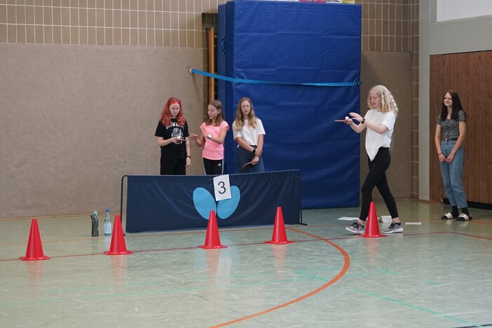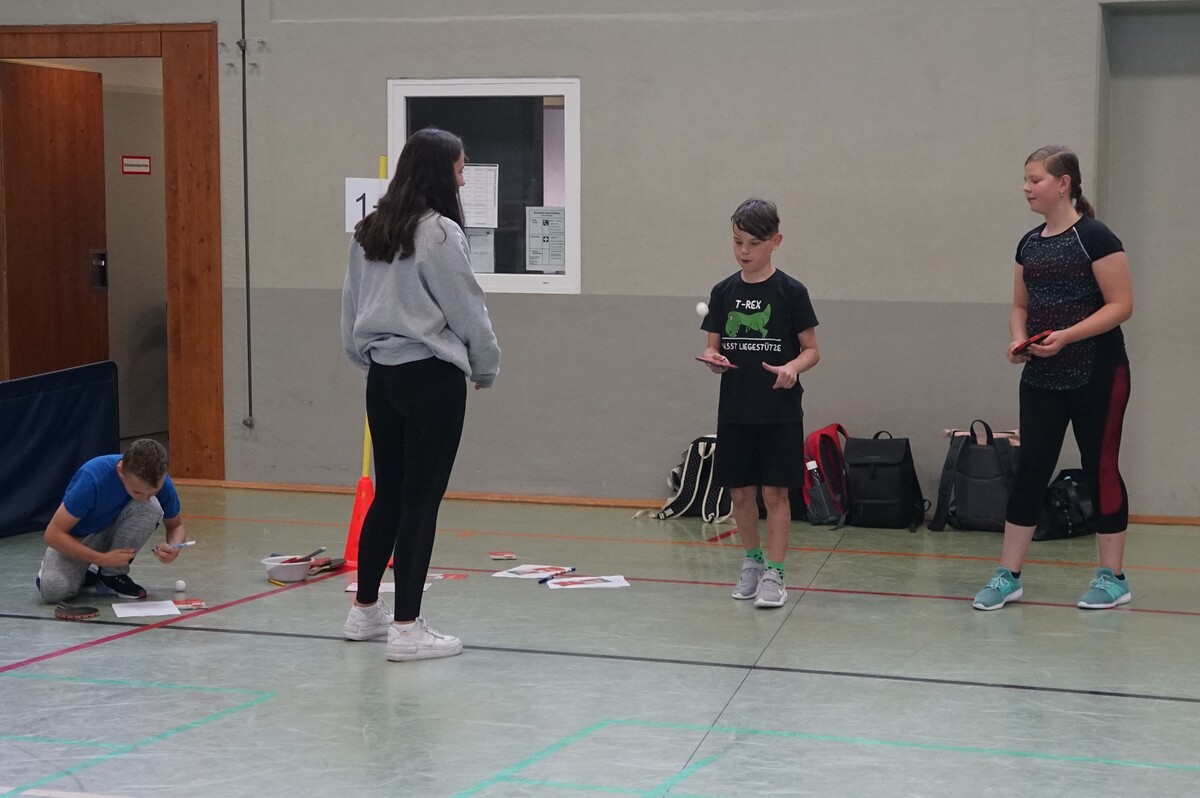 Jeweils drei Klassen belegten pro Doppelstunde die Turnhalle, so dass während der Schulzeit neun Klassen das Sportabzeichen erreichen konnten. In guter Zusammenarbeit mit der Grundschule und der Werratalschule in Heringen ist das Tischtennis spielen und die verschiedenen Aufgaben für das Abzeichen mehrere Wochen vorher in den Sportunterricht eingeflossen. So konnten die Kinder motiviert und konzentriert ihrer Sache gerecht werden und hatten beim durchlaufen der Übungen großen Spaß. Nach sportlichem Erfolg gab es für jeden Schüler eine Urkunde, das Sportabzeichen als Anstecker oder Aufnäher, kleine Sachpreise sowie selbstgebackene Waffeln.