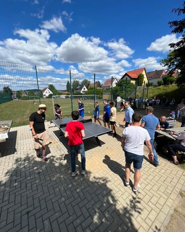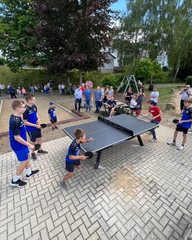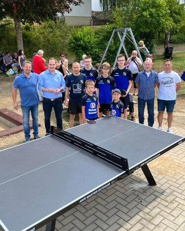 Im Rahmen der Ginseldorfer Festwoche zum Stadtjubiläum Marburg 800 wurde ein neuer Outdoor-Tischtennistisch im Stadtteil eröffnet. Dazu versammelten sich zahlreiche Kinder- und Jugendliche des Ortes sowie Vereinsmitglieder/innen und Spieler/innen des TTC Ginseldorf zur feierlichen Eröffnung auf dem Spielplatz. Die ersten Ballwechsel am neuen Tisch waren Rainer Kraus, Ortsbeirat Ginseldorf und selbst aktiver Tischtennisspieler beim TTC, und Martin Althaus, 1. Vorsitzender des TTC Ginseldorf, vorbehalten. Nach einigen sehenswerten Schlägen wurde der Tisch schnell von einer großen Anzahl an Kinder und Jugendlichen zu einem großen Rundlauf für die darauffolgenden Stunden in Beschlag genommen. Der TTC 1951 Ginseldorf e.V. hat den Tischtennistisch bei einem Wettbewerb des Hessischen Tischtennisverbandes gewonnen und stellt ihn der Allgemeinheit kostenlos zur Verfügung. Der Dank des Vereins gilt dem Hessischen-Tischtennis-Verband, der Firma GEWO und Rainer Kraus, der den Tisch im Vorfeld aufbaute. Ab sofort kann jederzeit Tischtennis am Spielplatz in Ginseldorf gespielt werden, unabhängig von Hallenöffnung oder Hallenbelegung. Der Tischtennistisch ist ein Mehrwert für den Spielplatz Ginseldorf und stellt eine zusätzliche sportliche Aktivität dar. Selbstverständlich soll der Tischtennistisch auch über das sportliche Angebot des TTC Ginseldorf informieren und nach Möglichkeit neue Gesichter in das Vereinstraining bringen, fügt Martin Althaus hinzu. Informationen zum Trainingsangebot des TTC Ginseldorf sind jederzeit unter www.ttc-ginseldorf.de oder in den sozialen Medien wie Facebook oder Instagram abrufbar.