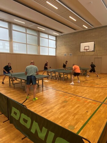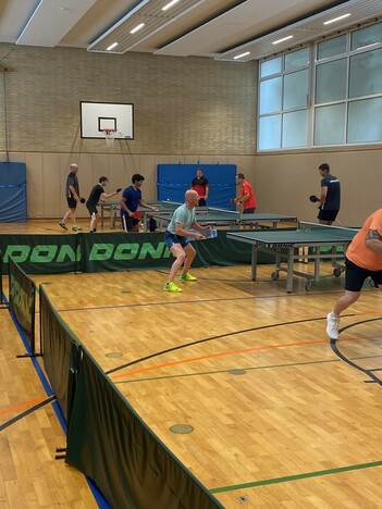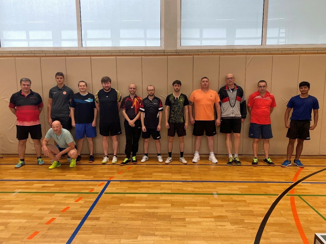 So konnten wir also pünktlich um 12 Uhr mit folgendem Teilnehmerfeld das Turnier starten: Samuel Hochmann von Eintracht Frankfurt, Adrian Ritter vom TSV 1921 Modau, Alexej Umanzew von den TTF Oberkirch, Marcin Sroka vom TuS 1883 Nordenstadt, Marco Sippel vom TTV Eschborn-Niederhöchstadt, Matthias „Matze“ Mörschel von der TSG Erlensee 1874, Bastian Krause und Johann Jeyaseelan von unseren Freunden, der Turnerschaft 1860 FFM Heddernheim, Daniel Martin vom TV 1894 Nieder-Beerbach und den Lokalmatadoren Sven Baublies, Jürgen Kratz und Michael Weber vom Harheimer TC.