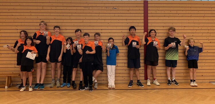 Die 13 Teilnehmer aus vier verschiedenen Vereinen freuten sich am Ende des Turniers über die neuen Sammelhefte, in die sie direkt ihren zweiten Juniorcup-Taler kleben konnten.
