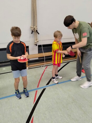 Nach einigen Vorübungen, die der Koordination dienten, ging es an die Tische. Unter der Leitung der Trainer und Assistenten ging es rasch recht lebhaft zu. Bei allem Spass waren die Kinder sehr konzentriert bei der Sache. Viel zu rasch war die Stunde nach einem Wettkampfspiel stets zu Ende.