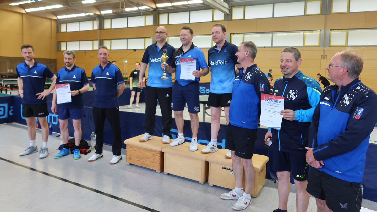 Erwartungsgemäß konnte sich die TG Unterliederbach bei den Senioren 70 durchsetzen. Analog zur Senioren 60-Konkurrenz setzten sich die TG sowie der TSV Vellmar in den ersten beiden Parten durch. Im direkten Aufeinandertreffen der beiden Titelanwärter ging Unterliederbach schnell mit 3:0 in Führung und im anschließenden Doppel hätten Dieter Holzapfel und Peter Krebs den Durchmarsch perfekt machen können. Doch durch eine äußerst knappe Fünfsatzniederlage und einer weiteren 2:3 Niederlage von Holzapfel wurde es nochmal spannend, bevor Manfred Schlicht den entscheidenden Punkt zum 4:2-Gesamtsieg beisteuerte.