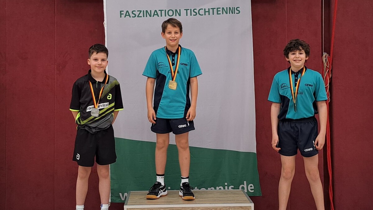 Herausragend für den HTTV war dabei der Erfolg von Jonathan Kilian (1. TTC Darmstadt), der die Goldmedaille errang. Bereits in der Gruppe zeigte sich Jonathan glänzend aufgelegt und gewann alle Gruppenspiele. In der Hauptrunde folgten zunächst zwei 3:0-Erfolge, unter anderem gegen Joel Rohaly (1. TTC Darmstadt), die ihn ins Endspiel führten, dass er gegen Koki Büschel (Sachsen) nervenstark mit 3:2 für sich entscheiden konnte. Joel belegte einen starken dritten Platz. Niklas Wasse (Eintracht Frankfurt) komplettierte als Achter das hervorragende Ergebnis der hessischen Mannschaft.