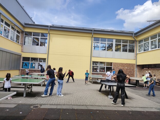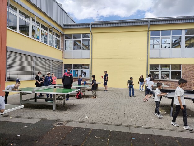 Viel Spaß hatten die Kinder bei der Aktion „Hessen spielt Tischtennis“ im Rahmen des Schulfests der Haingartenschule in Bruchköbel. An insgesamt acht Tischen auf dem Pausenhof der Schule konnten verschiedene Stationen an den Tischen ausprobiert werden.