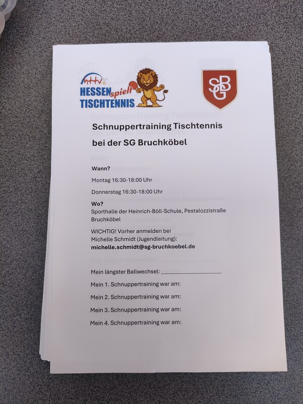 Alle Kinder bekam zum Abschluss einen selbstgestalteten Flyer zum Schnuppertraining mit nach Hause und sind herzlich eingeladen, Tischtennis bei der SG Bruchköbel auszuprobieren.