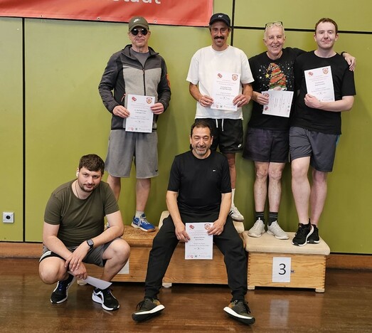 in der Aktiven-Klasse setzte sich Phillip Götz durch und holte sich den Titel des Stadtmeisters 2024. Mailo Keller (beide TuS Griesheim) wurde Zweiter. Den dritten Platz belegte einer der beiden französischen Gäste, Louis Lerun. Vierter wurde Can Eroglu (ebenfalls vom TuS), vor Matheo Laurent (5.), unserem zweiten Gast aus dem Region Bar-Le-Duc. Auch in dieser Klasse waren bei guter Stimmung Anfeuerungsrufe und viel Gelächter an den Tischen zu hören.