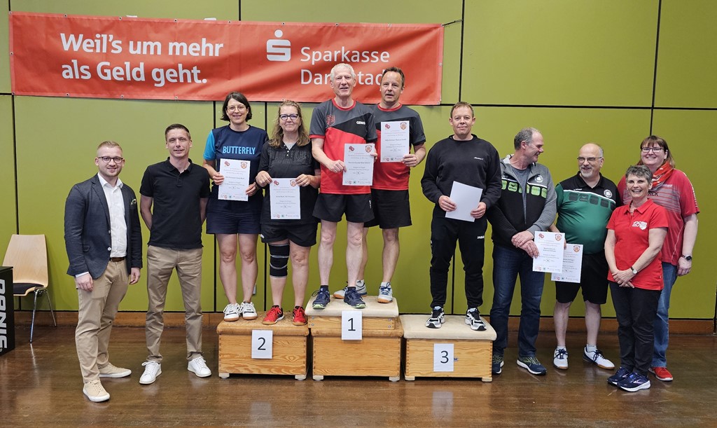 Am Pfingstwochenende fanden, im Rahmen der Aktion des Hessischen Tischtennis Verbandes "Hessen spielt Tischtennis" (wie bereits berichtet) die 5. Griesheimer Stadtmeisterschaften im Tischtennis statt. Anlässlich seines 125-jährigen Jubiläums war in diesem Jahr die Tischtennis Abteilung des TuS Griesheim Ausrichter in der Hegelsberghalle. Neben Spielerinnen und Spieler aus Griesheimer Vereinen oder in Griesheim gemeldete Einwohner waren außerdem geladene Gäste aus der Region Bar-le-Duc, der Partnerstadt Griesheims, unter den Teilnehmern zu finden.