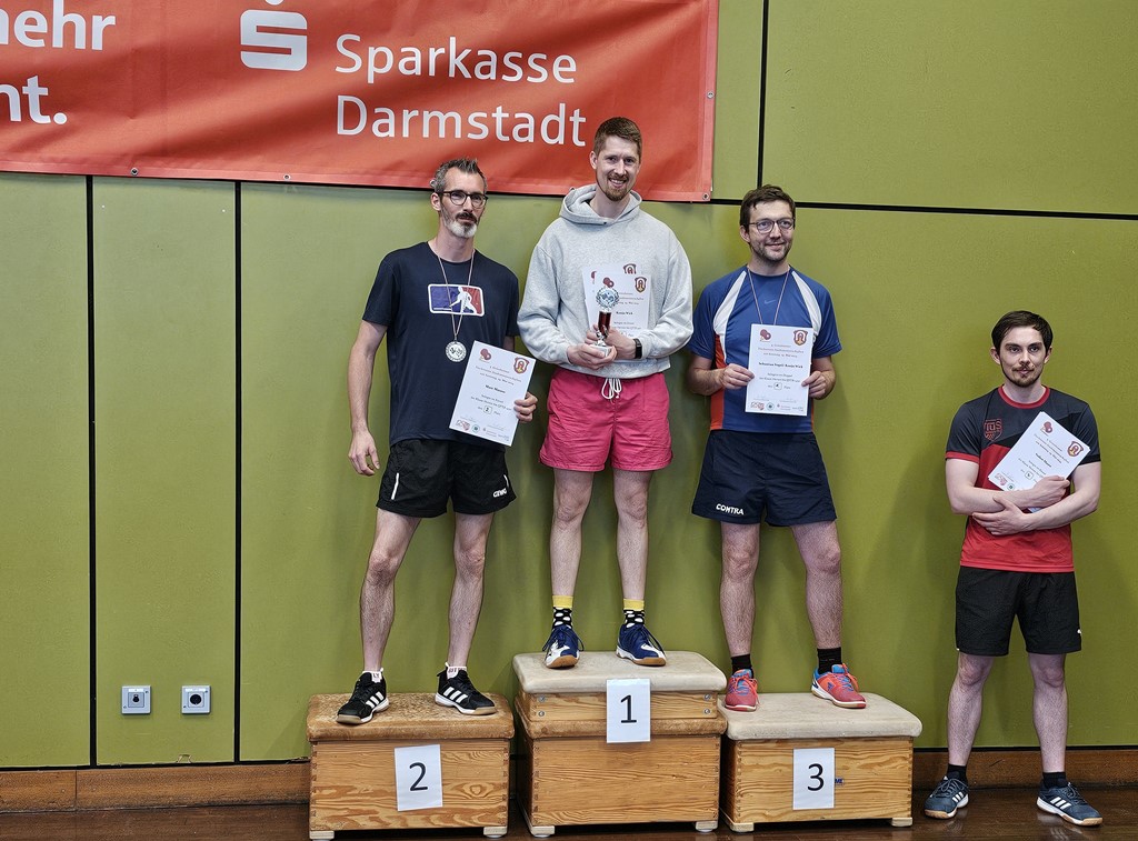 Ab 13 Uhr startete dann die Klasse QTTR 1300 bis 1450, hier fanden sich vier Spieler ein. Stadtmeister 2024 wurde Konja Wick vor Marc Marass (2.), Volker Mayer (3.) und Sebastian Vogel (4.). Im Doppel konnten sich Konja Wick/Sebastian Vogel in vier Sätzen gegen Marc Marass/Volker Mayer durchsetzen.