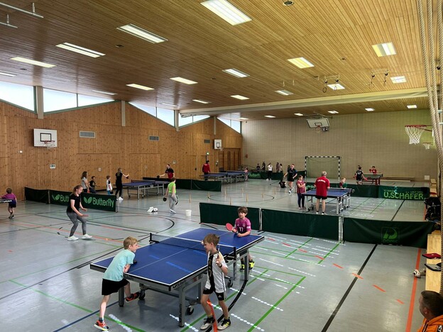So konnten die Kinder Ihr Talent unter anderem bei einem Tischtennis-Parcours, einem extra langen Riesen-Tisch oder bei verschiedenen Rückschlagübungen unter Beweis stellen.