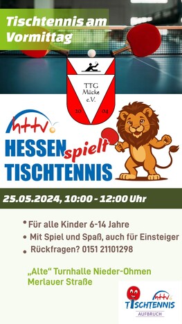 Am Samstag den 25.05 hatte die TTG Mücke zu „Tischtennis am Vormittag“ in die Turnhalle nach Nieder-Ohmen eingeladen.