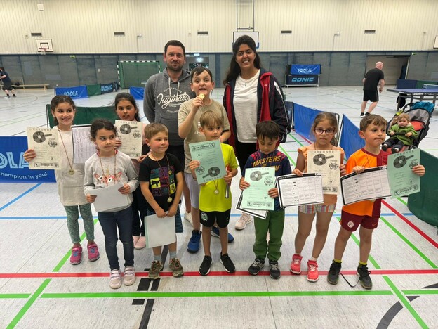 Am Dienstag war der Tag der “Kleinsten”, denn alle 20 Teilnehmer/innen waren begeistert das Tischtennis Abzeichen zu erlangen. Die Freude war natürlich sehr groß, denn neben der Urkunde gab es auch noch für jedes Kind eine Medaille. Die etwas Älteren hatten ihren Spaß am Rundlauf und einige Spieler/innen wollten ihr Können mit den Trainern zeigen.