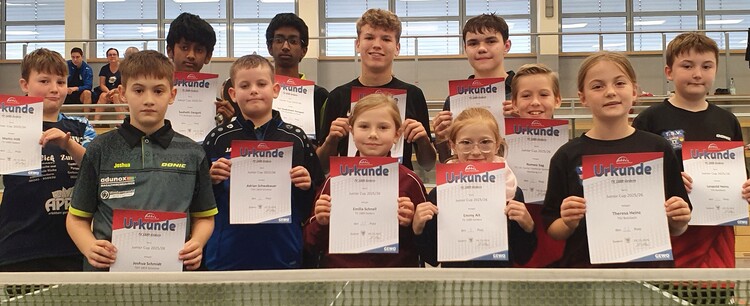 Damit nicht genug, führte der rührige TV Gedern parallel in der kleinen Sporthalle noch drei Juniorcup-Turniere durch. Teilnehmen konnten hier alle Spieler des Jahrgangs 2007 und jünger. Die drei Turniere waren in verschiedene Punkte-Kategorien unterteilt. Im ersten Cup bis 900 Punkte setzte sich am Ende der hochmotivierte Lukas Knaf von der TTG Büdingen-Lorbach durch – hauchdünn vor Schottens Nachwuchstalent Paul Körner.