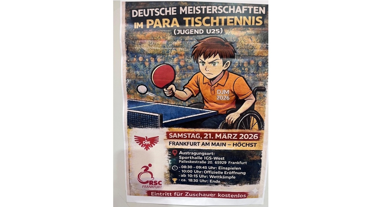 Am kommenden Samstag stehen die Deutschen Jugendmeisterschaften im Par-Tischtennis im hessischen Frankfurt am Main an.