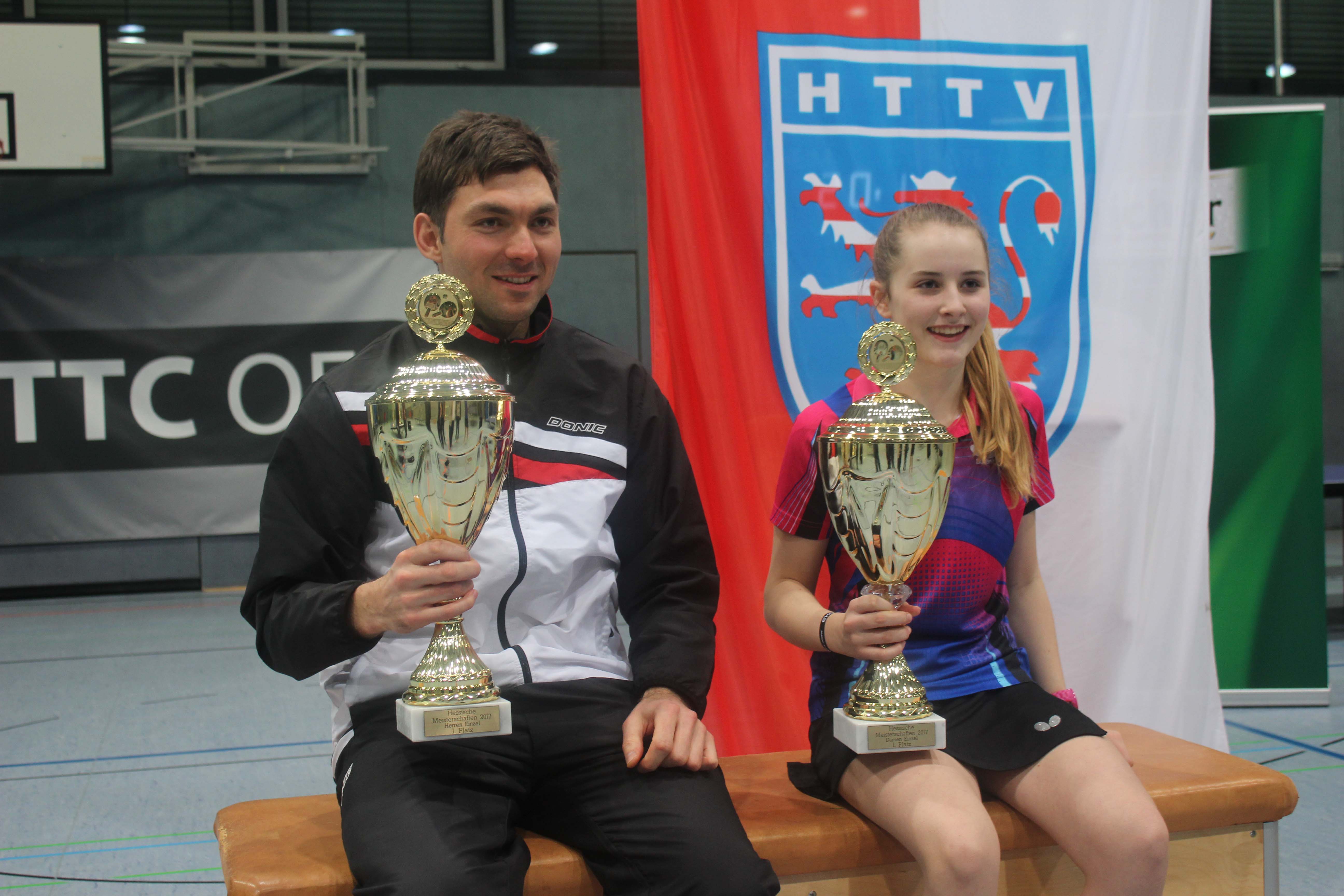 Am Samstag (21.01.) gab es in der Wingert-Sporthalle in Bad Homburg bei den Hessenmeisterschaften der Damen und Herren im Einzel und Doppel neue Titelträger. Bei den Damen war die Jüngste die Beste. Die 2003 geborene Sophia Klee (Sportclub Niestetal) bezwang im Finale Gaia Monfardini (TTC G.-W. Staffel). Auch im Doppel war Sophia Klee (Sportclub Niestetal) nicht zu bezwingen. Ein unerwartetes Ende nahmen die Herren-Konkurrenzen. Im Doppel, das vor dem Einzel ausgetragen wurde, zog sich Dominik Scheja (TTC OE Bad Homburg) eine schmerzhafte Oberschenkelverletzung zu. So musste er, der zusammen mit Tom Schmidt (SVH Kassel) im Doppel angetreten war, das Spiel nach gewonnenem ersten Satz kampflos aufgeben und der Sieg ging an Torsten Mähner/Gregor Surnin (TLV Eichenzell/TG Obertshausen). Nach seiner Verletzung musste Dominik Scheja ins Krankenhaus und gab somit auch das Einzel kampflos ab. Der Titelgewinn von Jochen Schmitt (TTV Stadtallendorf), der im Laufe der Veranstaltung immer stärker wurde, war die größte Überraschung der Meisterschaften.