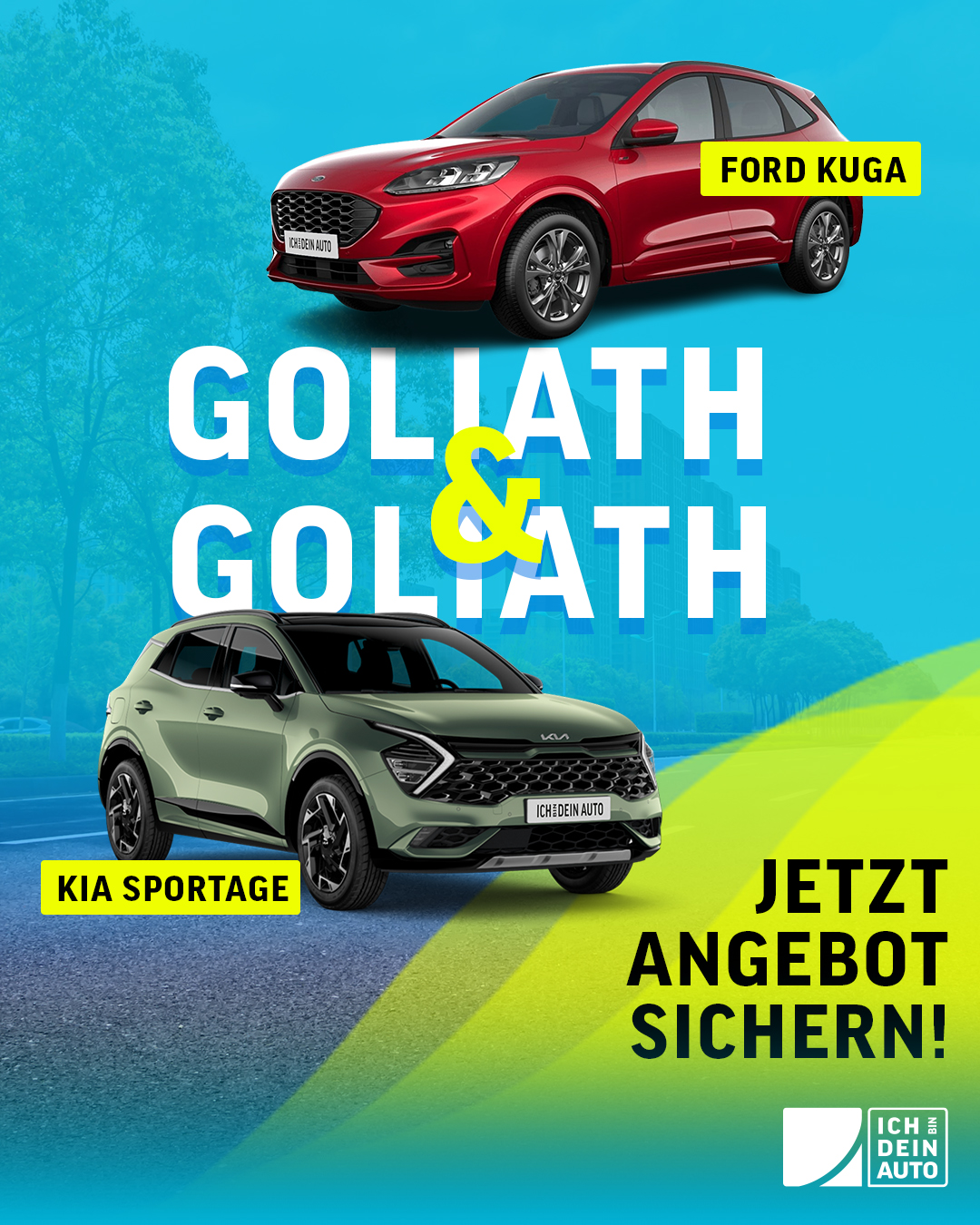 Zwei ganz Große stehen bei uns in den Startlöchern! Das kolossale Angebot gibt es exklusiv, solange der Vorrat reicht: Der Kuga Plug-In Hybrid und der Kia Sportage sind jetzt zur monatlichen Komplettrate ab unschlagbaren 449 € bei uns erhältlich. Diese zwei SUVs bringen alles mit, was das innovative und technologieverwöhnte Herz begehrt, und somit macht man mit beiden Allroundern alles richtig!