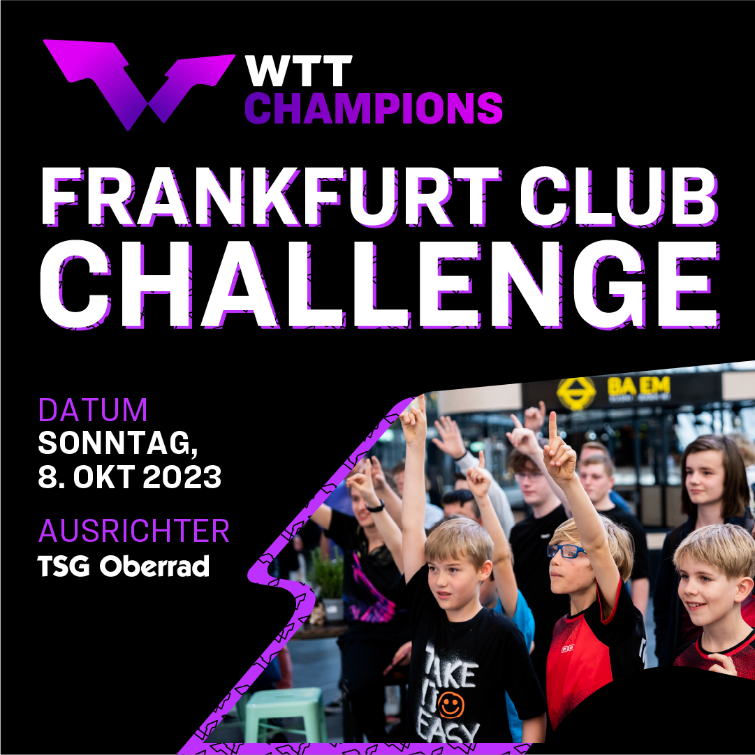 WTT Champions Frankfurt Club Challenge am 8. Oktober Spielen wie die Profis und 20 Karten für Deinen Verein gewinnen