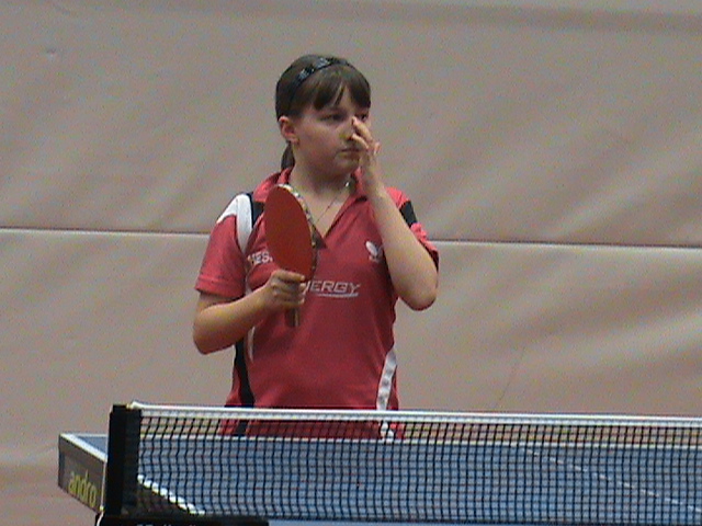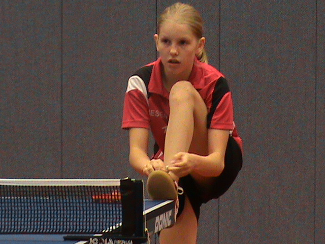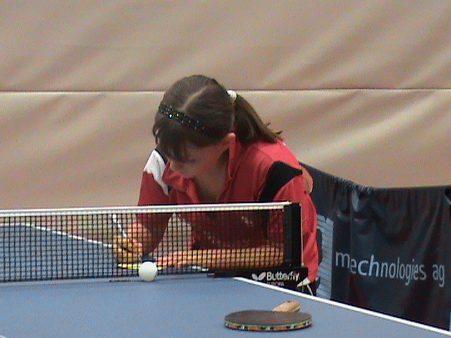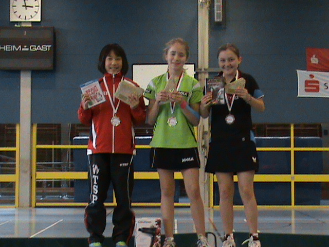 Janina Kämmerer belegte bei den älteren Schülerinnen Platz 3, der ebenfalls hoch einzuschätzen ist. Auf Platz 6 kam Jennifer Jiang, die teilweise ihr gutes Spinpotenzial vorzeigte, dies aber nicht immer bis zum Schluß durchhielt.