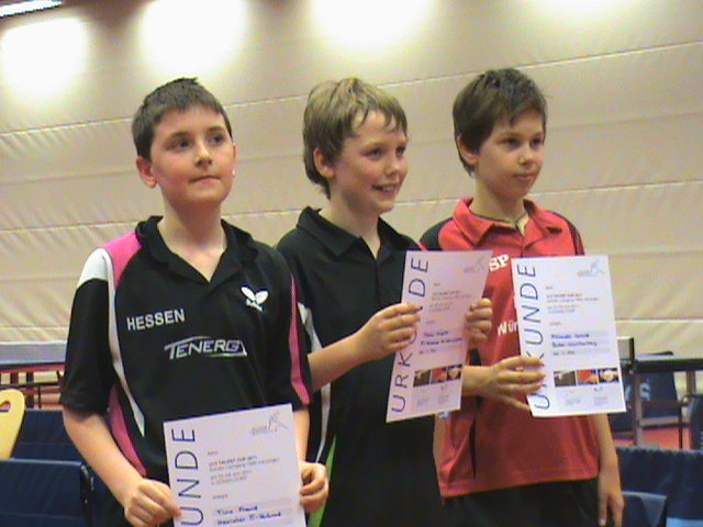 Die 2. Stufe der DTTB-Talentsichtung findet vom 15.03. bis 18.03.2012 am Olympiastützpunkt in Heidelberg statt. Hierzu werden aus den gesamten Regionalverbänden des DTTB ca. 32 Kinder eingeladen. Aus Hessen können sich dafür vor allem die C-Schüler/innen Anastasia Bondareva, Sophia Klee, Yuki Tsutsui, Adam Jannicki und Leon Pradler berechtigte Hoffnungen machen, dafür eingeladen zu werden, wobei auch die anderen HTTV-Talente einen sehr guten Eindruck hinterließen.
