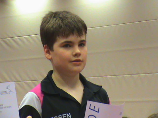Noah Weber startete in der sehr gut besetzten A-Schülerklasse und verlor sein erstes und einziges Spiel im Halbfinale gegen den Schülereuropameisterschafts-Teilnehmer Nils Hohmeier aus Niedersachsen recht knapp. Selbst ein 1:7-Rückstand im entscheidenden Satz versuchte er noch auszugleichen, doch ein rechtzeitiges Time-Out seines Gegners verhinderte im Endeffekt den Einzug ins Finale!