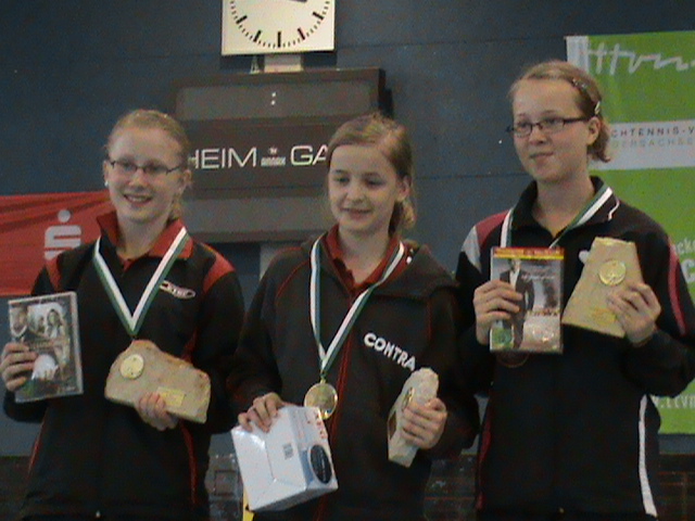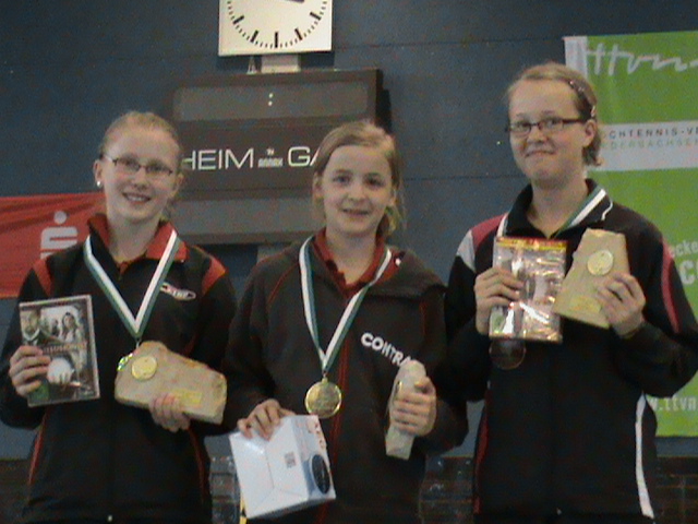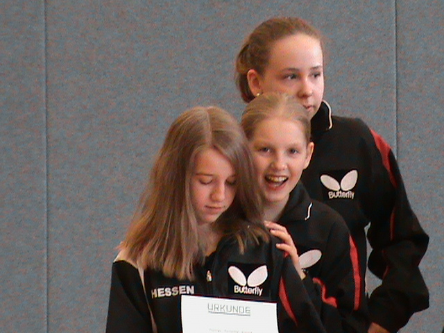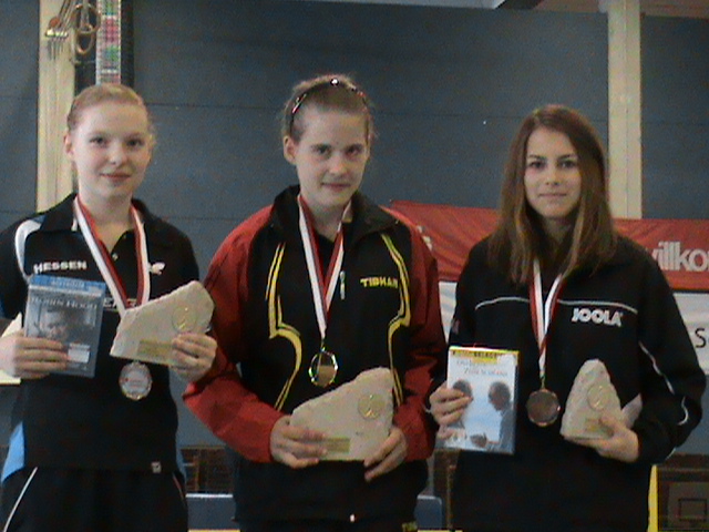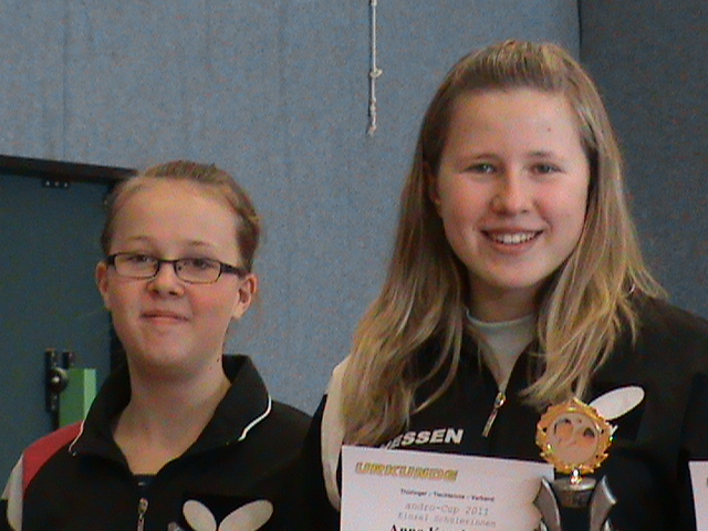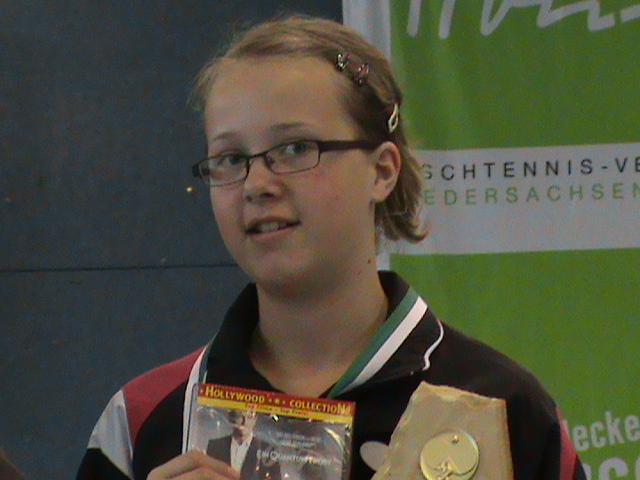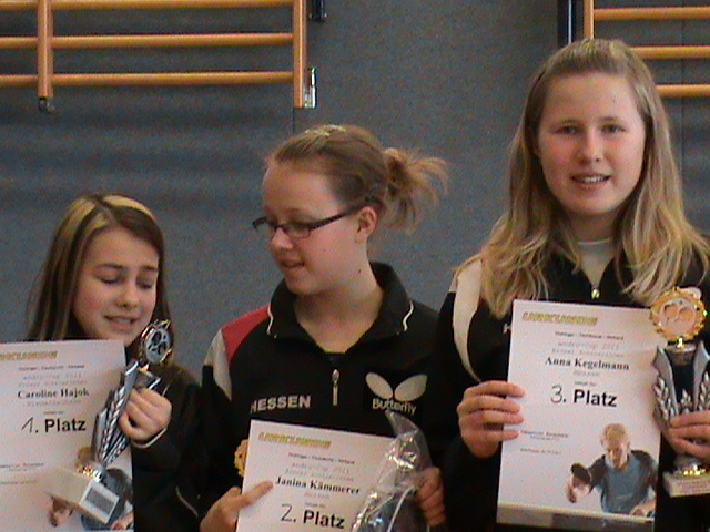Alena Lemmer hatte großen Anteil am Gesamterfolg des HTTV. Mit ihrem 3:2 Finalsieg am Sonntagnachmittag in der A-Schülerinnen-Klasse gegen die starke DTTB-Ranglistenspielerin Wan Yuan aus BaWü erkämpfte sie den nötigen Punktvorsprung . Janina Ciepluch sorgte mit ihrem 3. Platz für ein weiteres Highlight in der gleichen Klasse und verwies mit einem 3:1 Sieg die Spielerin Lammert aus dem WTTV auf den 4. Platz.
