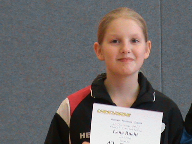 Anna Jansen startete für den HTTV in der B-Schülerinnenklasse und konnte einen für sie recht guten 3. Platz erringen. Sie lieferte sich im Halbfinale ein tolles Abwehrmatch gegen die spätere Siegerin Lotta Rose aus dem WTTV, wobei sie etwas unglücklich mit 9:11 im entscheidenden Satz verlor, dabei mehrere Netz- und Kantenbälle verkraften musste, aber dennoch vorbildlich kämpfte und nie aufgab.