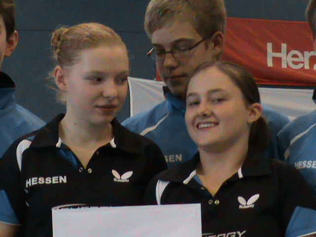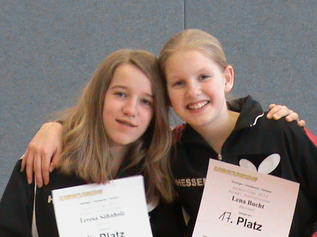 Bei den Mädchen dieser Altersklasse belegte Lena Bucht einen ordentlichen 11. Platz, wobei sie sich auf dem Weg zur Spitzengruppe an der bayrischen Abwehrspielerin Heeg „ die Zähne ausbiss“ und knapp mit 2:3 Sätzen verlor. Anna Jansen belegte den 14. Platz, zeigte während des Turnieres große Fortschritte mit ihrem Abwehrspielsystem und gewann alle ihre Spiele am letzten Tag in den Platzierungsrunden.
