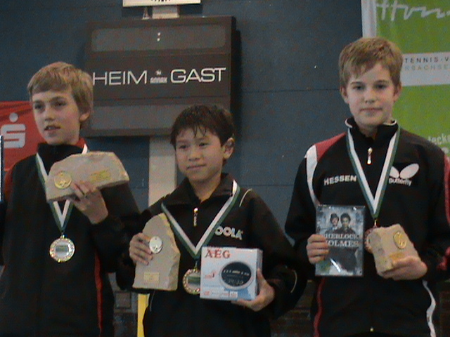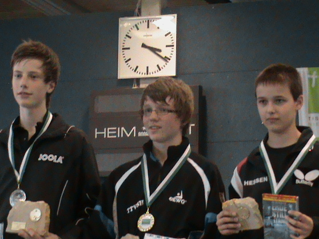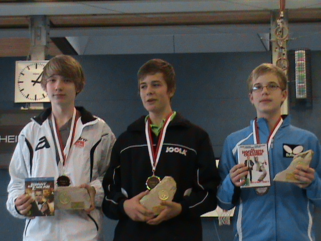 Bei den 2000er Jahrgängen konnte sich im Schülerfeld Niels Felder bis ins Finale durchkämpfen, unterlag hier aber dem Spieler Eise aus Baden-Württemberg knapp in 1:3 Sätzen. Sein verantwortlicher HTTV-Trainer und dortiger Betreuer Xaiojun Gao lobte ihn danach für seine gute technische Entwicklung im Vorhandbereich und seine kämpferischen Verhaltensweisen. Ein sehr gutes Ergebnis auch für Fan Bo Meng, der durch die Betreuung seines angereisten Vaters, den 4. Platz erreichte. Für Max Egner und Florian Kraft auf den Plätzen 10 und 11 war noch etwas Luft nach oben, beide zeigten aber auch bis zum Schluss tollen Einsatz und Siegeswillen.