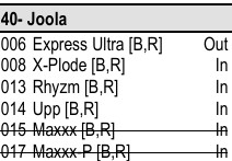 Beläge, deren ITTF-Zulassung nach dem 01.07. einer Spielzeit (vom 01.07. eines Jahres bis zum 30.06. des darauf folgenden Jahres) abgelaufen ist, sind nachfolgend