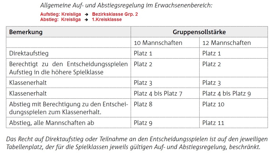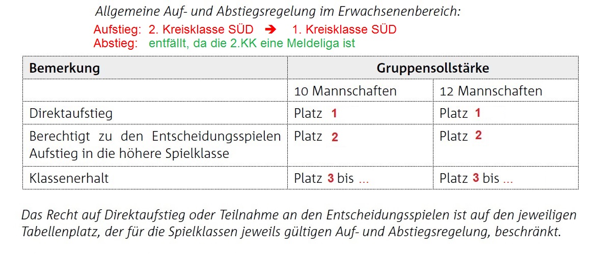 Dadurch kann die laut neuer WSO allgemeingültige Auf- und Abstiegsregelung nicht angewandt werden, weshalb der Bezirkssportausschuss folgende abweichende Regelungen getroffen hat: