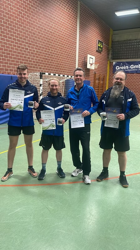 Die Doppelmeisterschaft fand mit 14 Spielern statt. Die Doppel wurden jeweils gelost, um etwa ähnliche Leistungsstärken zu erreichen. Wie immer steht hier der Spaß im Vordergrund, den auch alle hatten.