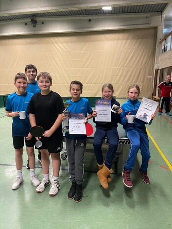 Alle Kinder bekamen neben Urkunden und einem Pokal noch bedruckte Tassen mit ihrem Namen und Tischtennismotiven.